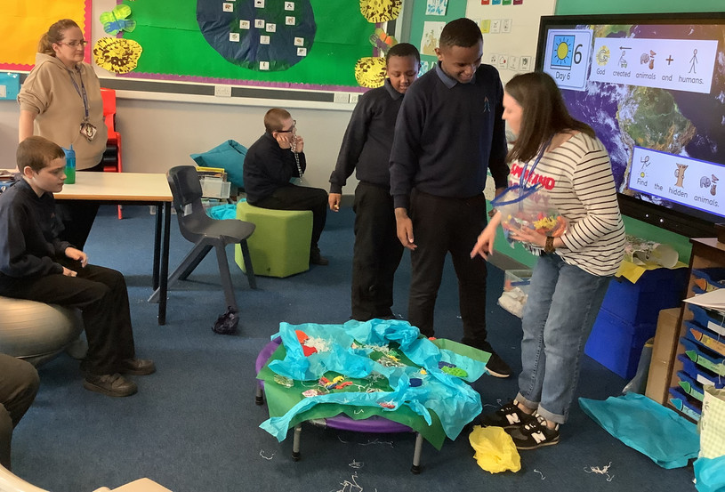 In Independence, we have begun by looking at the ‘Story of Creation’. We took part in a sensory story and looked at different stages of the story. We then created our own collages to represent what happened during each day, using images. We worked together as a team, to do a day each. The final result was a set of 7 images depicting the 7 days of Creation. We have also been creating our own Globes to represent the world, showing what the earth looks like and how amazing it is.